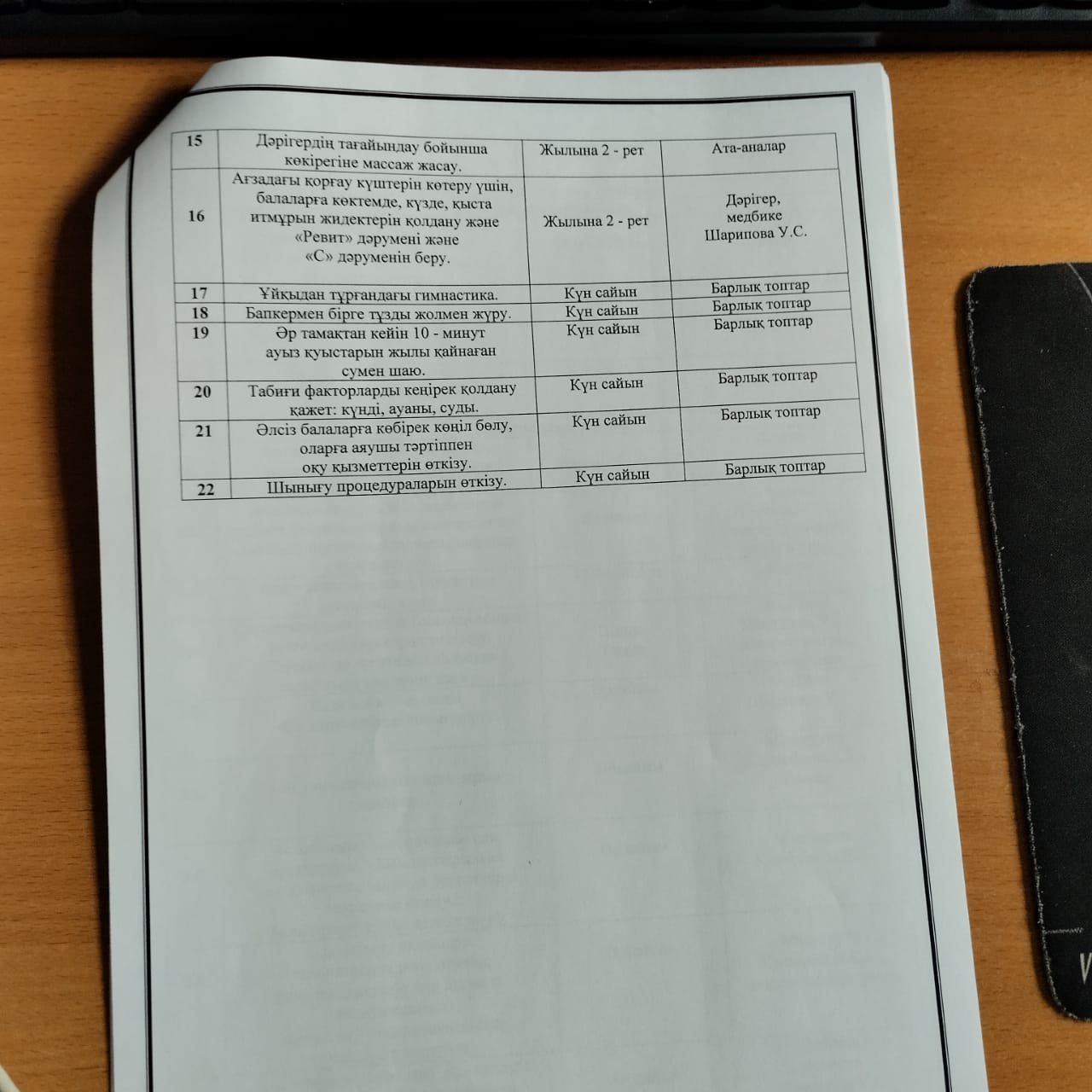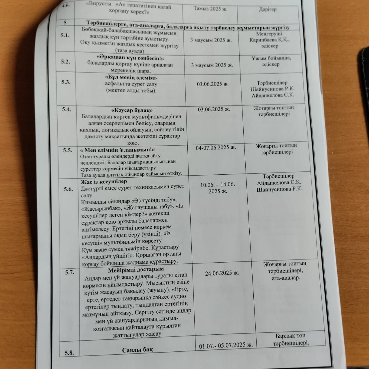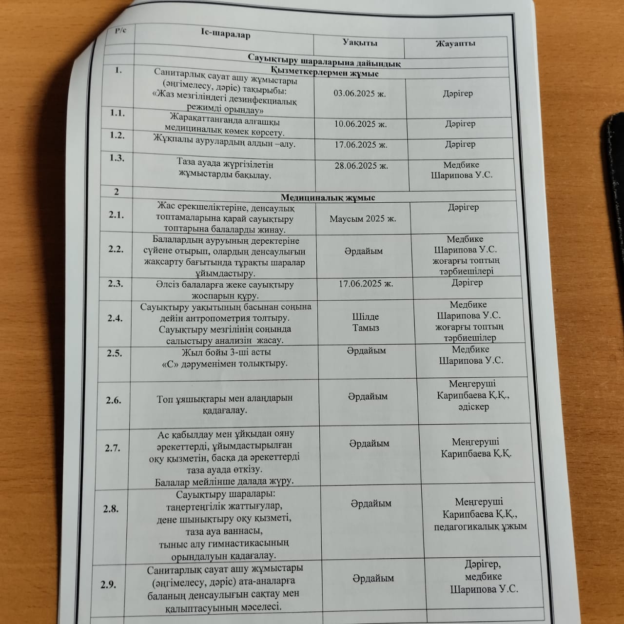 30 май 2025 0 1 2 3 4 5 КМҚК "№146 бөбекжай-балабақшасының 2025 жылғы жазғы сауықтыру шараларының жұмыс жоспары"