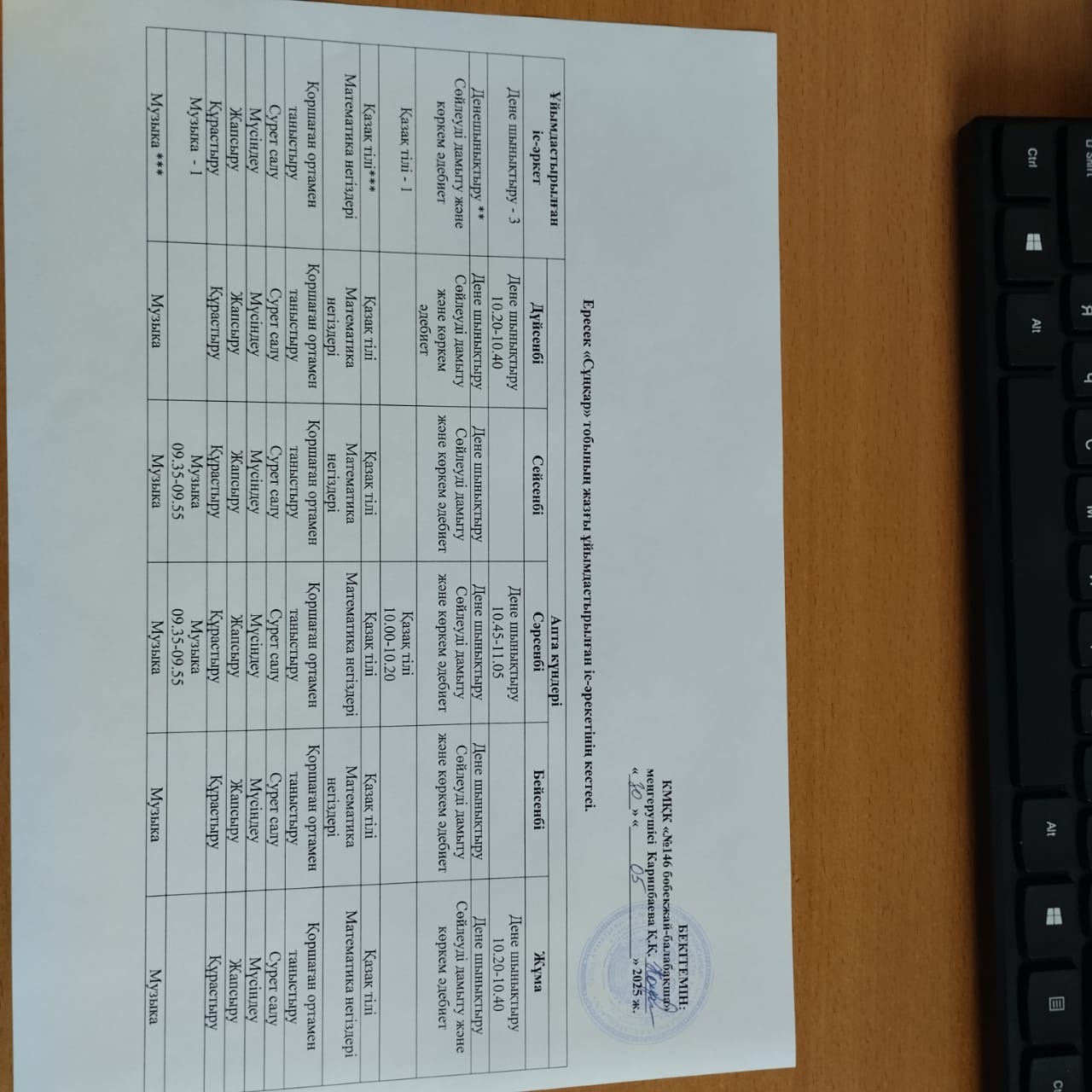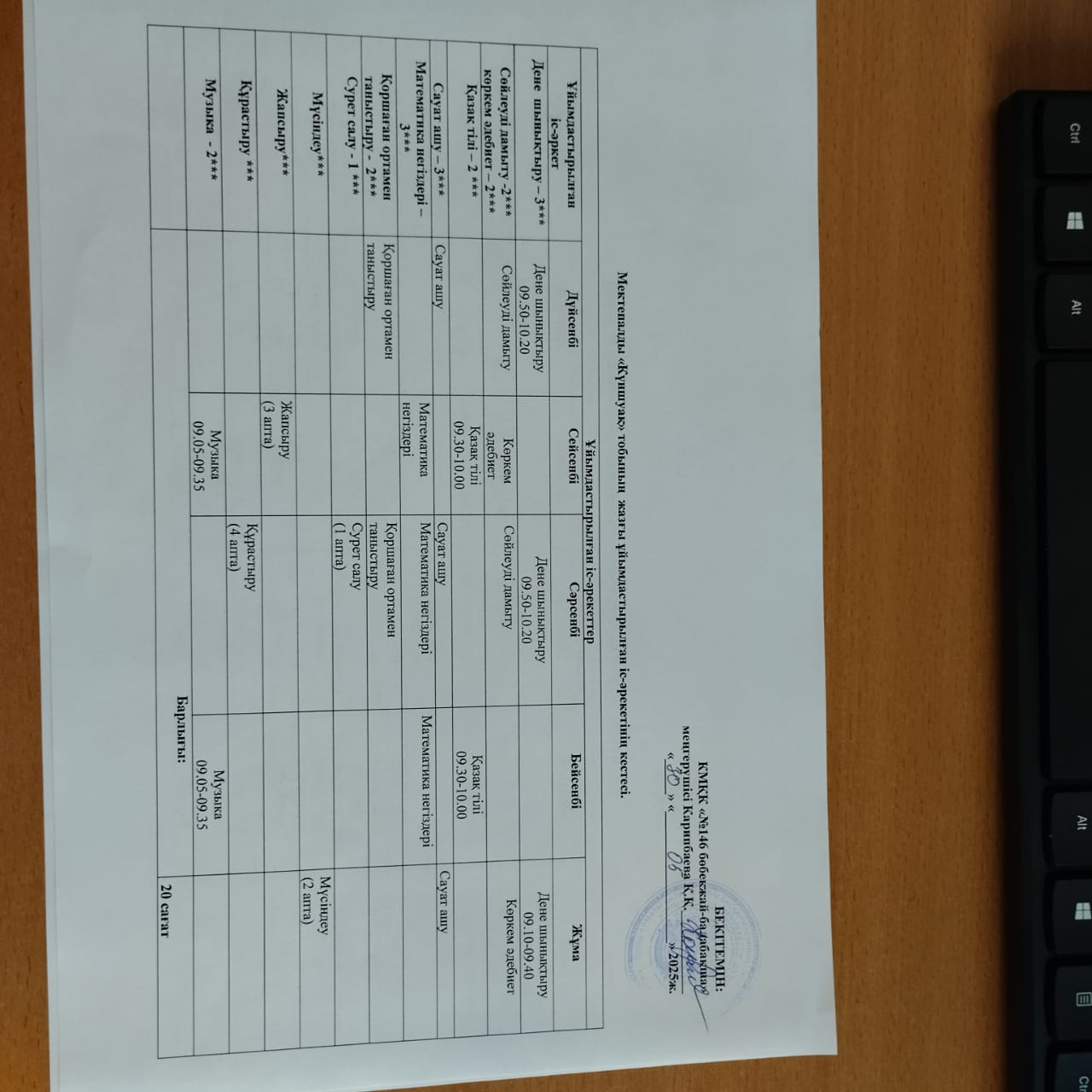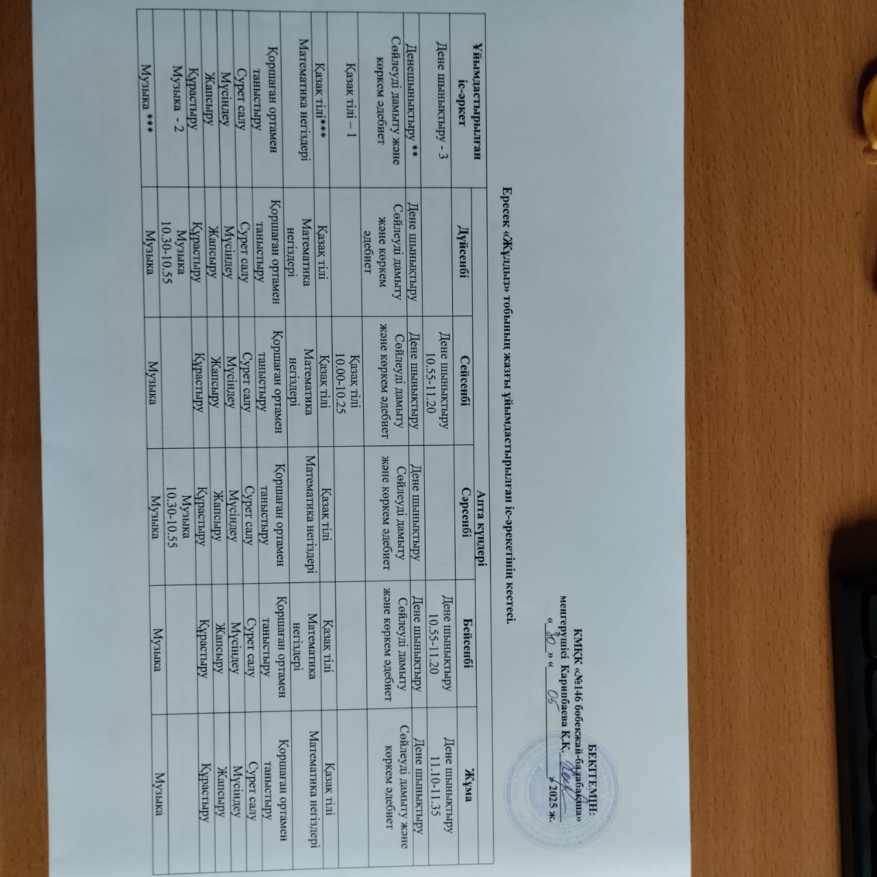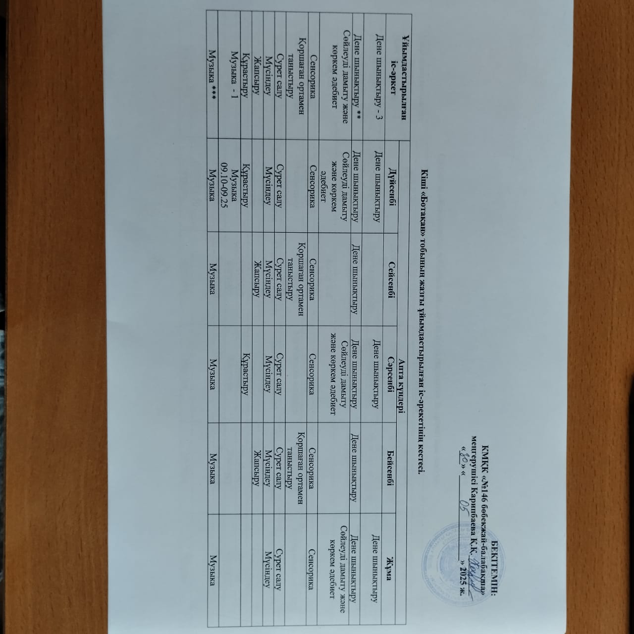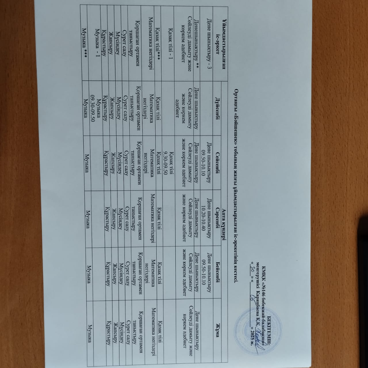 » Жазғы ұйымдастырылған іс-әрекетінің кестелері.