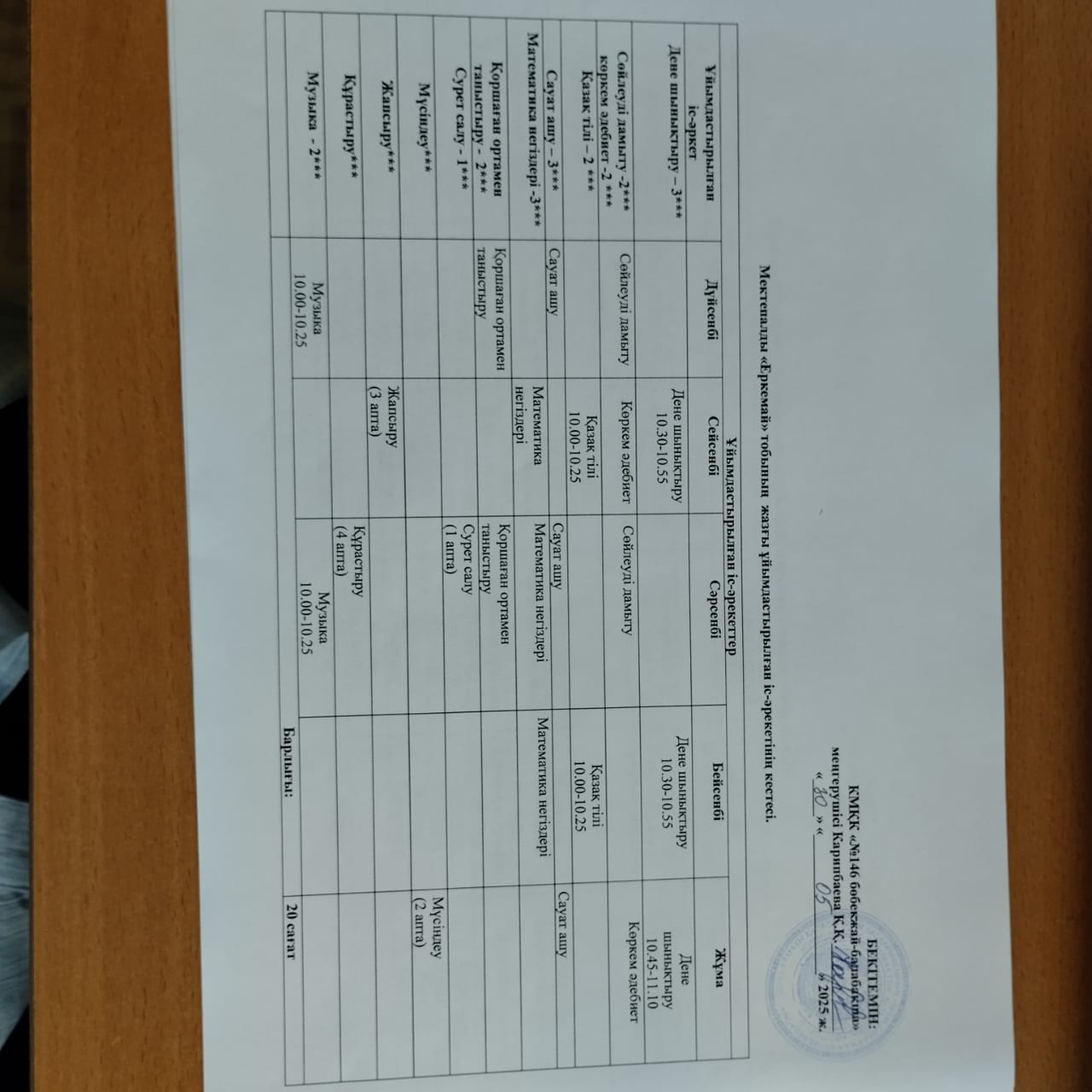 Жазғы ұйымдастырылған іс-әрекетінің кестелері.