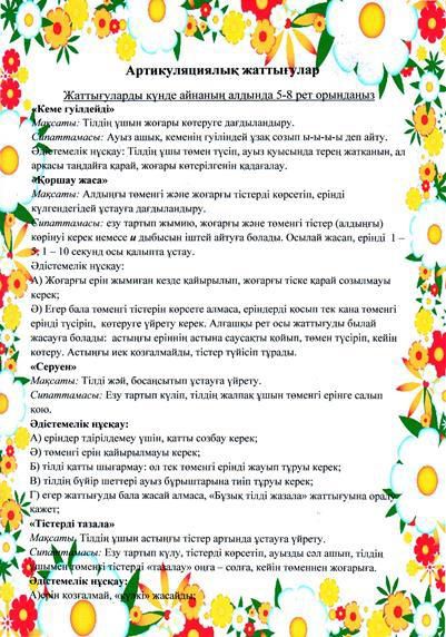 23 октябрь 2025 0 1 2 3 4 5 Балабақшаға келмейтін балаларға арналған кеңестер. Артикуляциялық жаттығулар.Логопед маманы
