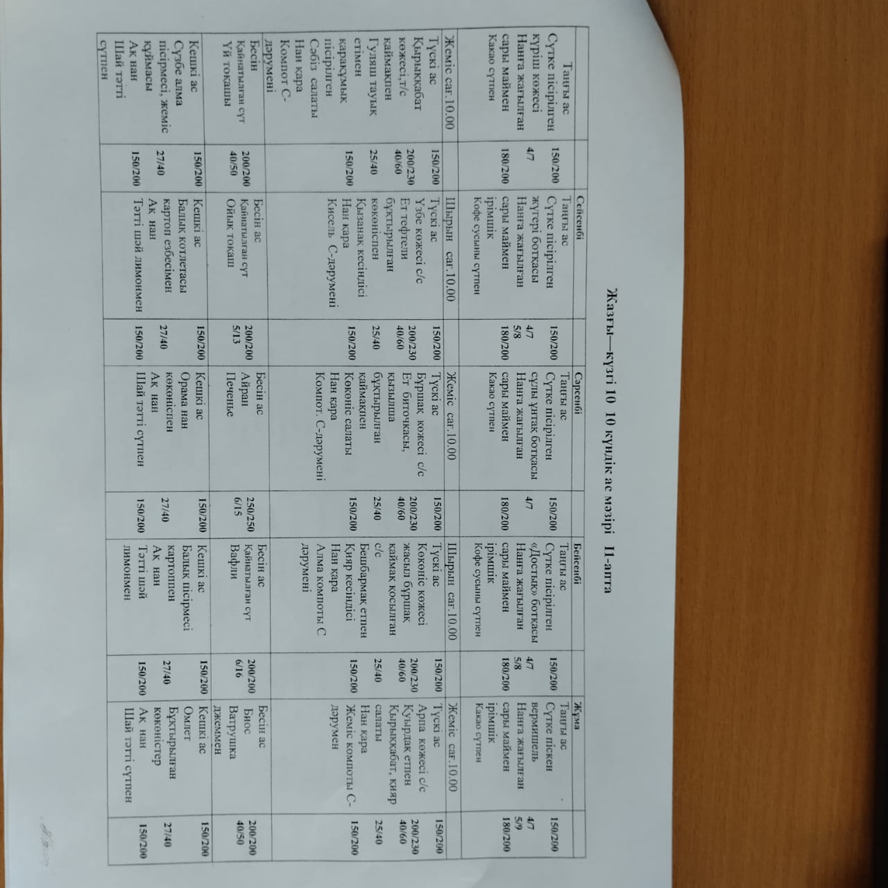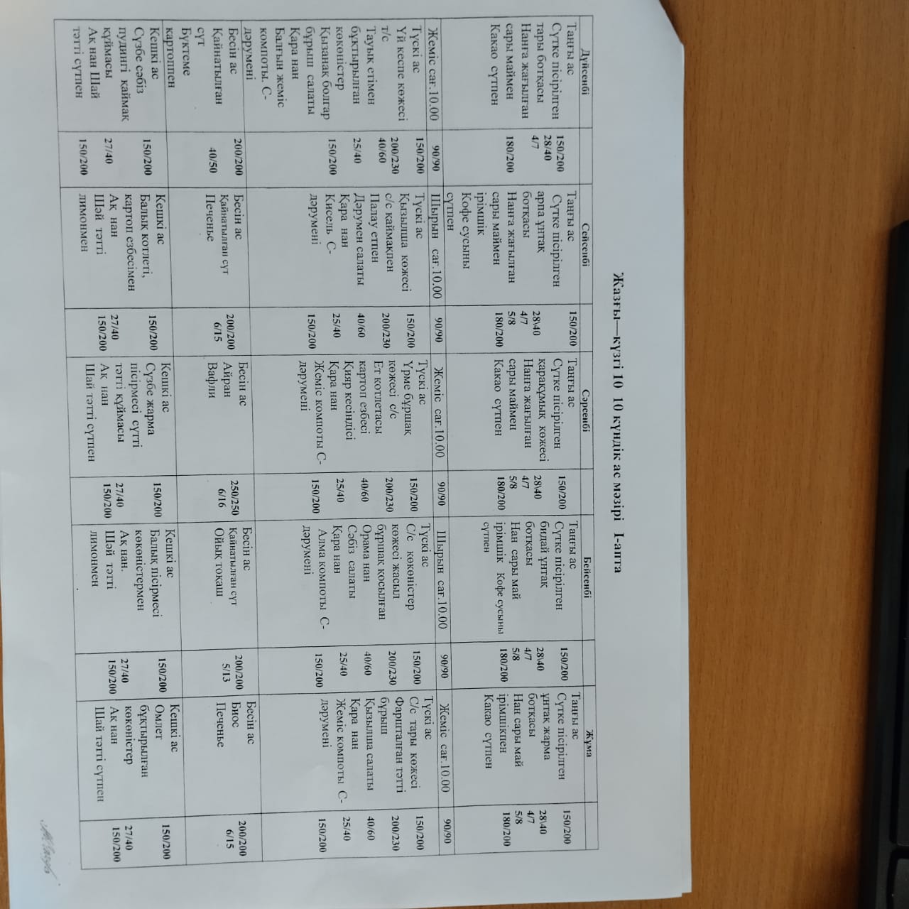 Жазғы -күзгі 10күндік ас мәзірі І -апта